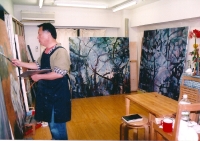金原昭夫・制作中公募展やグループ展に出品する目的を持った方のための講座です。毎日開講しています。一講座2〜3名の少人数でF60号〜F100号の制作をエスキースから始め高い意識で制作する研究コースです。武蔵野美術大学の通信課程の課題対策も行います。複数日受講の場合の受講料軽減措置を行います。
