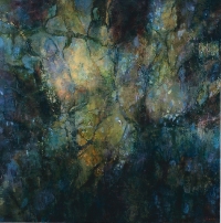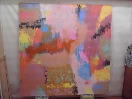 浅見輝代 S100油彩 プロセス 2010.7/19S100号制作の思索の第一歩としてパレットで調色した色彩を自由な感覚をもとに画面に置いている。この最初の生き生きとした表情が本来の作者の制作姿勢の中で消えてしまうことがある。自己の絵画に対する概念がこの自由さを消してしまうことが無いように感覚を研ぎすまし制作に向かって欲しい。
