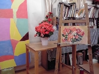 花を描く・阿部信子 アクリル 水彩紙油絵パレットや道具の使い方などを体験します。少人数での密度のある時間を過ごせます。わかりやすい言葉で要点を伝えるよう心がけ、より良い方向に指導します。制作の進み具合によりその都度カリキュラムを決めてゆきます。今年は「花を描く」をテーマに沢山の花がアトリエを飾りました。