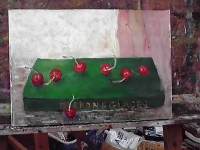 阿部信子「さくらんぼを描く」 水彩紙・アクリル絵の具7/19