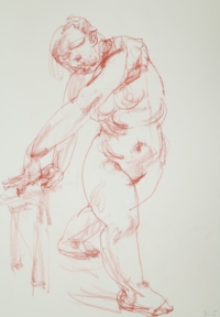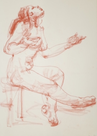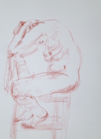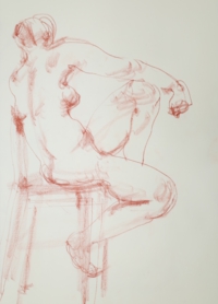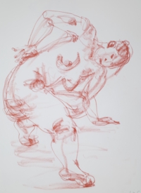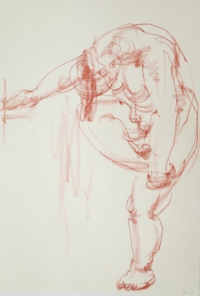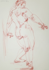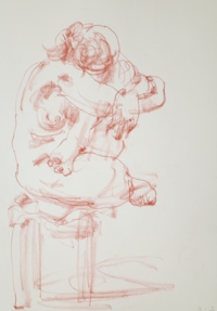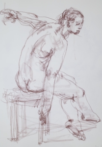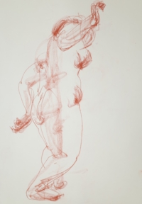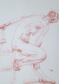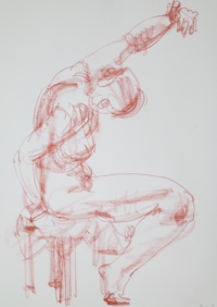 アトリエ透水會のクロッキー会は原則として土曜日に開催。ポーズは5分〜4分。クロッキーはこの短い時間ということに意味があります。モデルの動きやポーズの特徴を大きく一つの塊りとして捉えることが目的です。ゆったりと描く習慣が沢山のクロッキーをこなすうちに身に付いてくるでしょう。ポーズの合間のほっとした時間、途中にお茶の時間を挟んで6ポーズ(6ポーズ×5分)の充実した時間を共有します。
