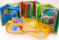 こどもたちの絵本の展開はまったく自由で奇想天外のおはなしが繰り広げられます。毎回お話を聞き取りその場でパソコン上で文章化し作品に添付していきます。描いた作品はその日のうちに接着し本の形が少しずつ見えて来ます。完成後はハードカバーの表紙を付けてすてきな絵本が完成します。完成した時の達成感を味わうことが大切です。