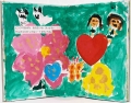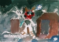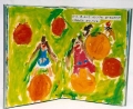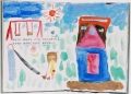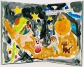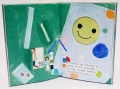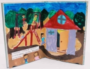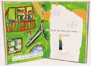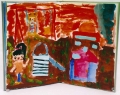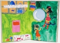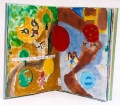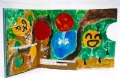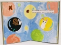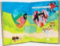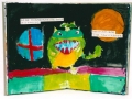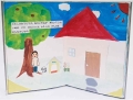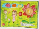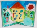 絵本は朝お家の前での「普通の日常を表すこと」から始まります。そしてとびらをあけてお家に入ることでこども達の大好きな「非日常の世界」にトリップします。お話しながら毎回一枚の絵を描きます。私はこども達の言葉をその場でパソコンに打ち込みます。こども達が帰ったあと一枚の作品は張り込まれ少しずつ本の形が見えて来ます。アトリエの絵本制作の大きな特徴は始めにストーリーを作らないということです。そうです、こども達は行き先を考えていません。自由に組み立てて行くようにお話が生まれます。